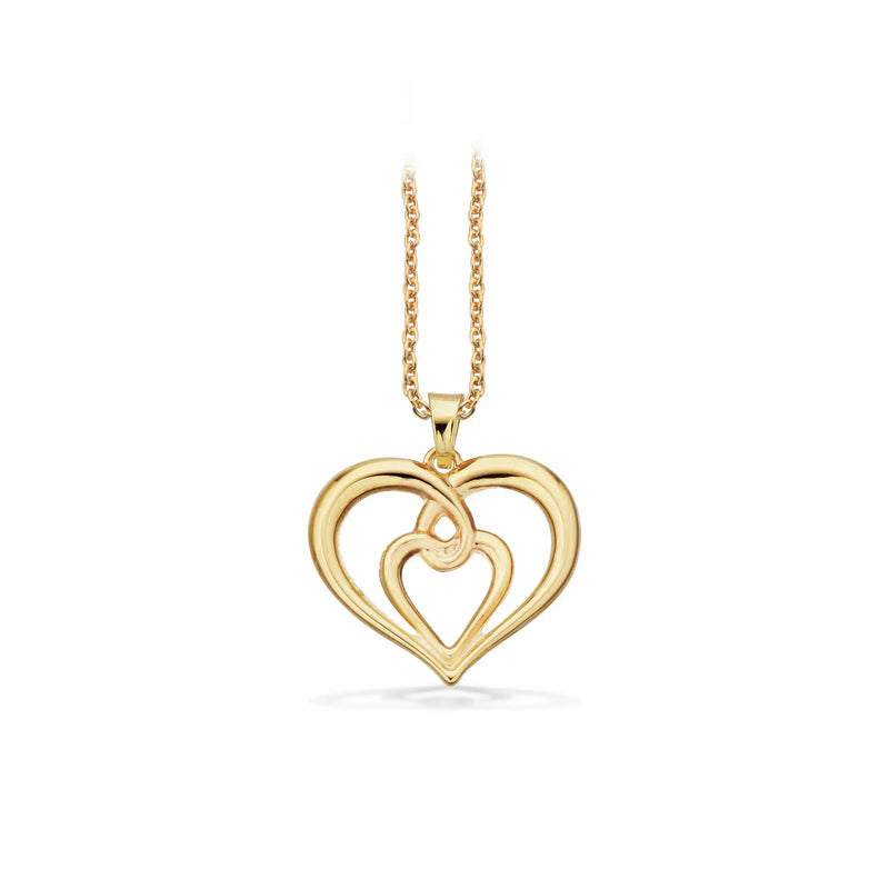 Scrouples - 8 kt guld vedhæng, blank hjerte med forgyldt kæde - Model: 214023