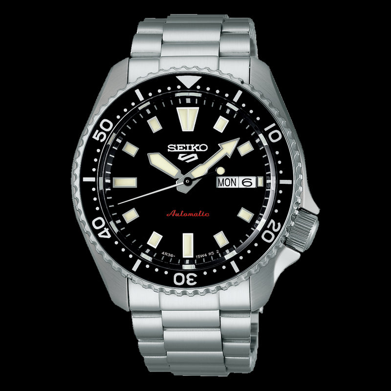 Seiko - Seiko 5 sport automatic herreur i stål m. lænke, sort skive - Model: SRPL85K1